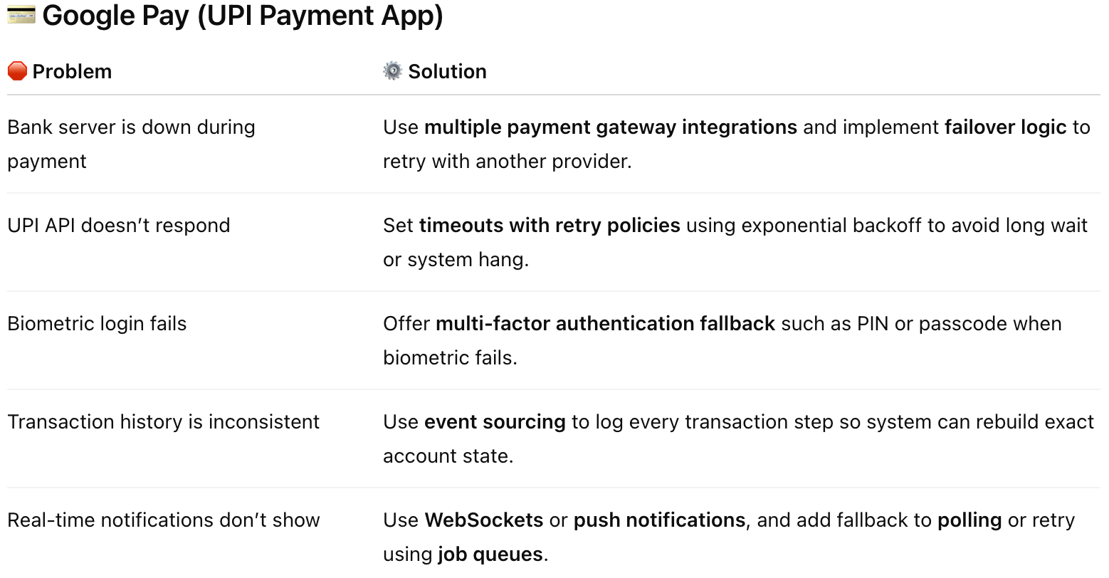 Microservices or third-party services (e.g., payment gateways, SMS providers, CDN) may go down.